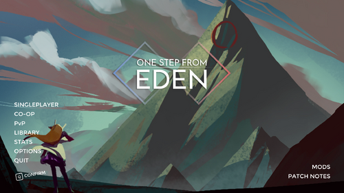 In One Step From Eden , selezioni un personaggio e avanzi attraverso 7 mondi generati proceduralmente, potenziandoti con vari incantesimi e artefatti lungo il cammino verso l'Eden. Ci sono 4 tipi di mondi, ognuno con il proprio set di nemici e boss , e imparare i loro schemi di movimento/attacco è la chiave per la vittoria.